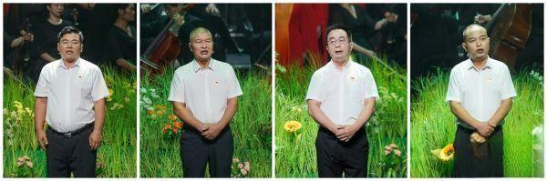 基層村干部鞏保雄(左一)、高泉偉(左二)、俞小平(右二)和施金通(右一)走上舞臺,深情講述《新時代——我做鄉(xiāng)村振興答卷人》