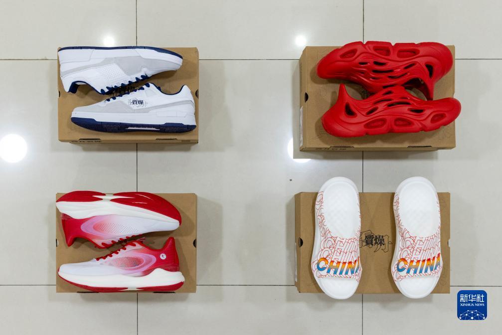 這是7月24日拍攝的第31屆世界大學(xué)生夏季運動會中國代表團(tuán)成員配發(fā)裝備中的不同功能的鞋。新華社記者 沈伯韓 攝