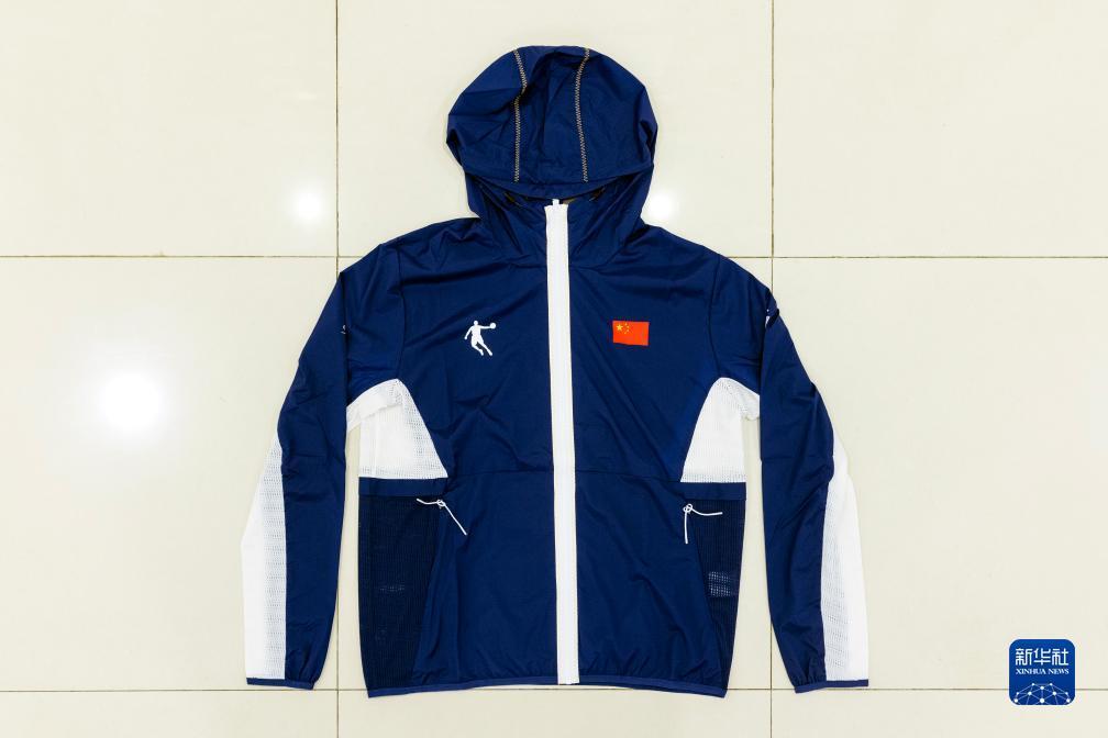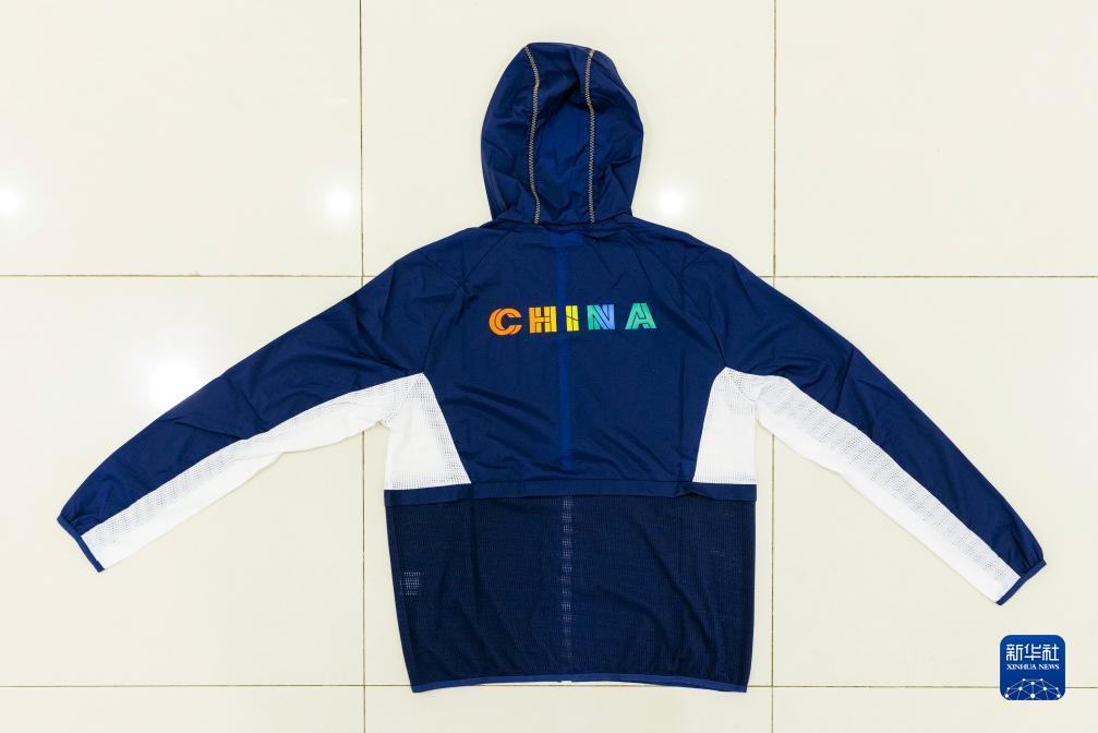 這是7月24日拍攝的第31屆世界大學(xué)生夏季運動會中國代表團(tuán)成員配發(fā)裝備中的梭織單層夾克。新華社記者 沈伯韓 攝