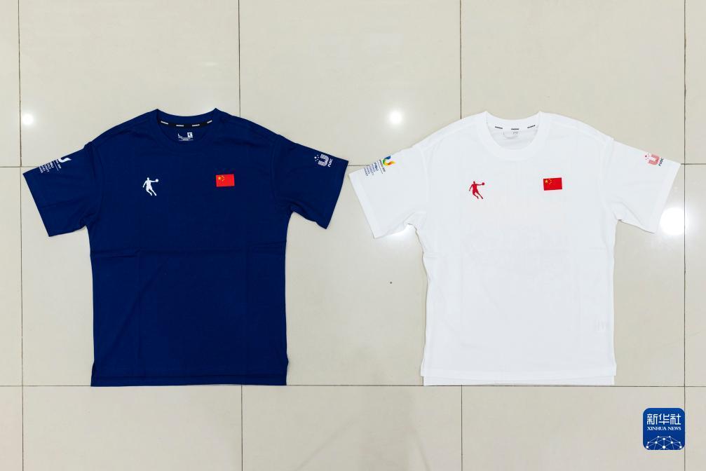 這是7月24日拍攝的第31屆世界大學(xué)生夏季運動會中國代表團(tuán)成員配發(fā)裝備中的短T恤衫。新華社記者 沈伯韓 攝