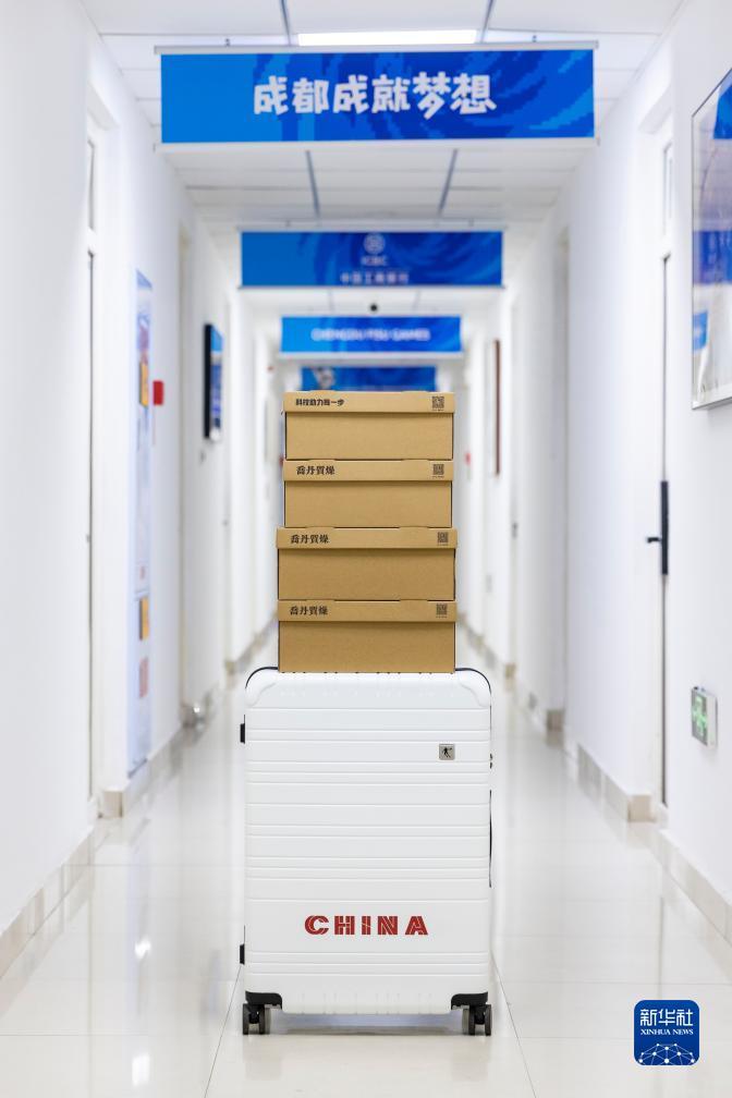 這是7月24日在第31屆世界大學(xué)生夏季運動會大運村中國代表團(tuán)駐地拍攝的代表團(tuán)成員配發(fā)裝備。新華社記者 沈伯韓 攝