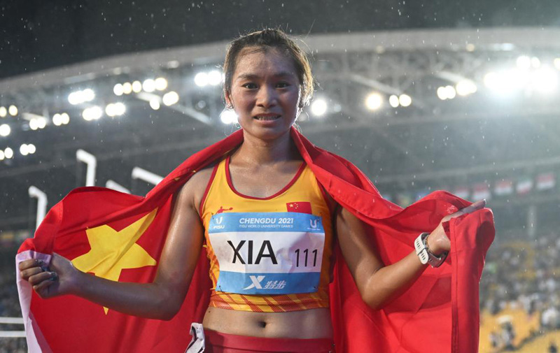 8月1日,夏雨雨在賽后慶祝。新華社記者鄧華攝