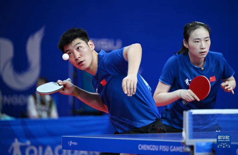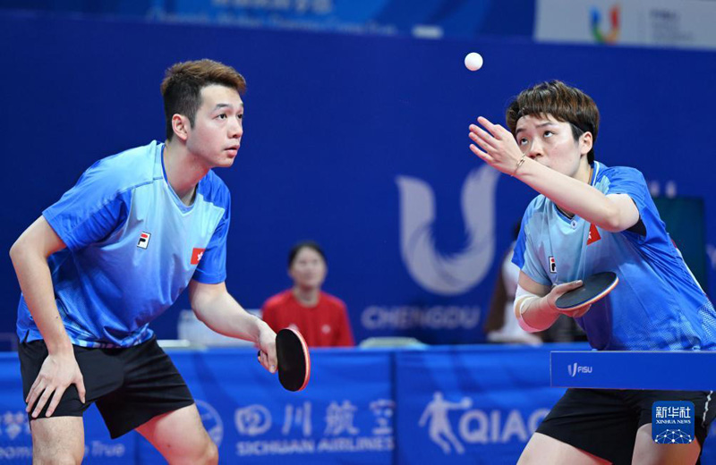 當日,在成都舉行的第31屆世界大學生夏季運動會乒乓球比賽混合雙打半決賽中,中國組合薛飛/王曉彤以4比0戰(zhàn)勝中國香港組合何鈞杰/杜凱琹,晉級決賽。