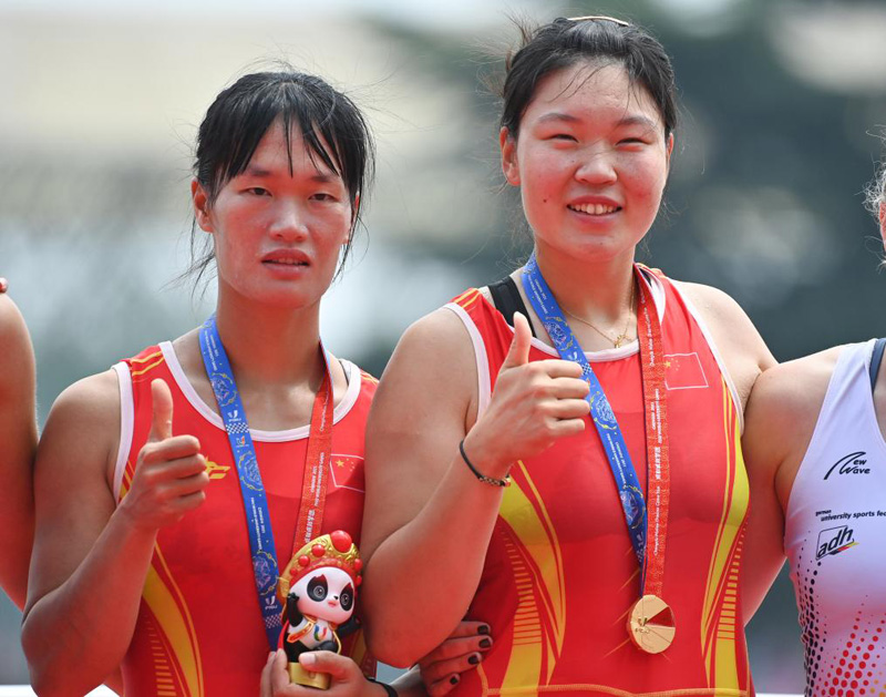 在女子八人單槳有舵手決賽中,中國女將們“一騎絕塵”,以6分25秒03的成績獲得金牌。來自江西師范大學(xué)的吳伊慧奪冠后說:“賽艇項目比較冷門,希望通過大運會讓大家更多地了解賽艇的魅力。”