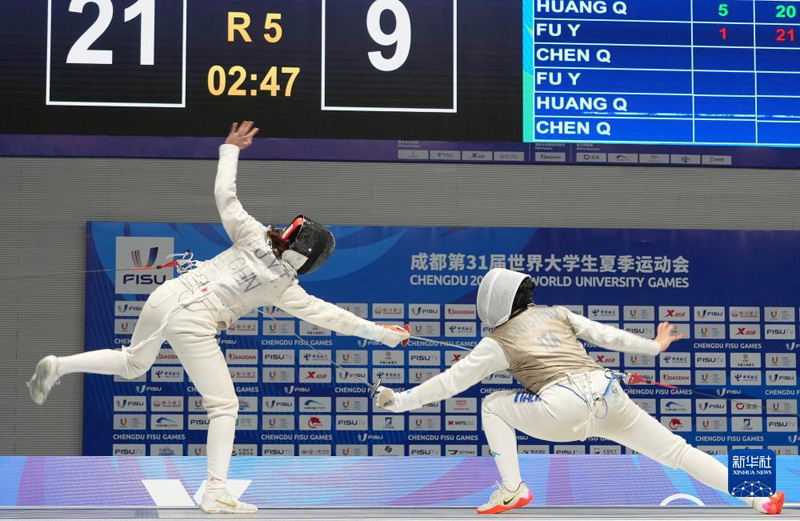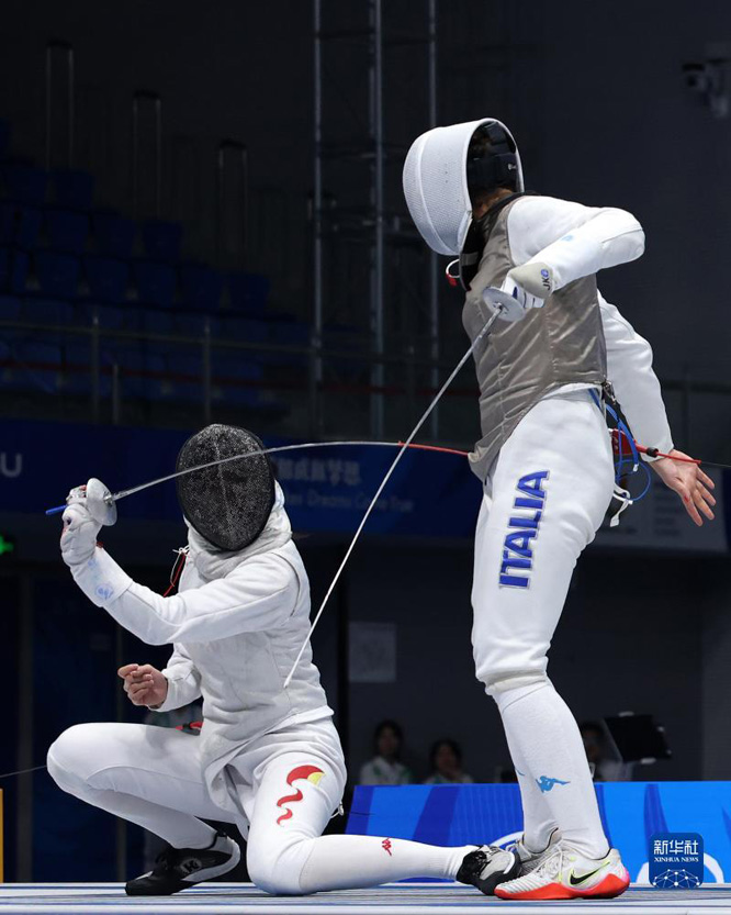 當(dāng)日,在成都舉行的第31屆世界大學(xué)生夏季運(yùn)動(dòng)會(huì)擊劍女子花劍團(tuán)體金牌賽中,中國(guó)隊(duì)以45比22戰(zhàn)勝意大利隊(duì),獲得金牌。