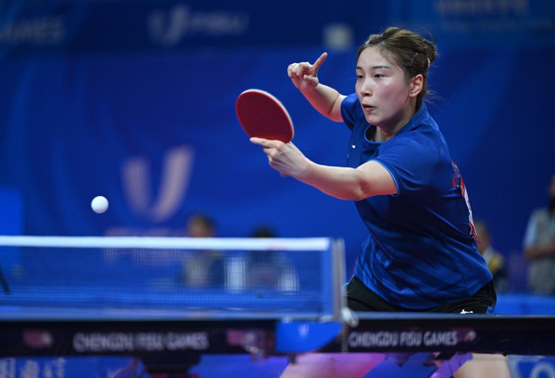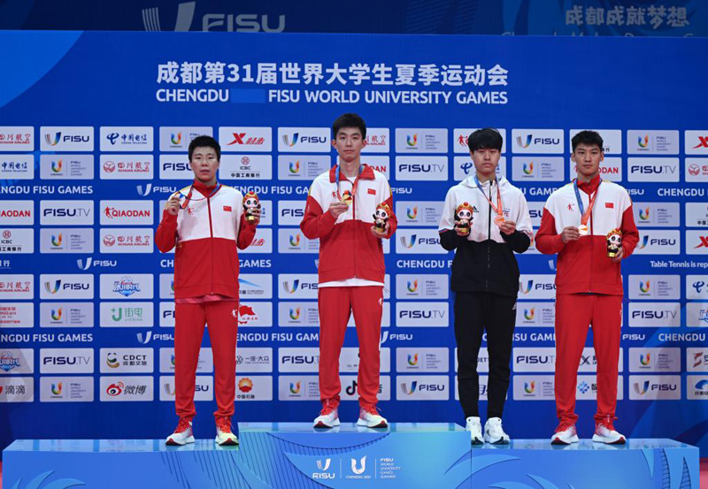 至此,本屆大運會乒乓球項目在成都市高新體育中心體育館完賽,8天時間內(nèi)共產(chǎn)生7枚金牌。