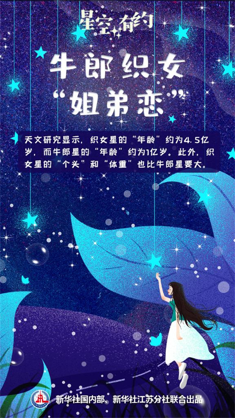新華社南京8月20日電(記者王玨玢、邱冰清)8月22日將迎來七夕節(jié),這一天也是我國民間傳說中牛郎織女鵲橋相會的日子。牛郎織女的愛情,來源于我國古代人民對夏季夜空的觀察和想象。“牛郎”和“織女”真能相會嗎?他們在“身高”“外貌”“年齡”上是否相配?天文科普專家為您揭秘七夕節(jié)中的天文“冷知識”。