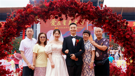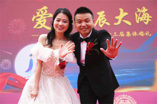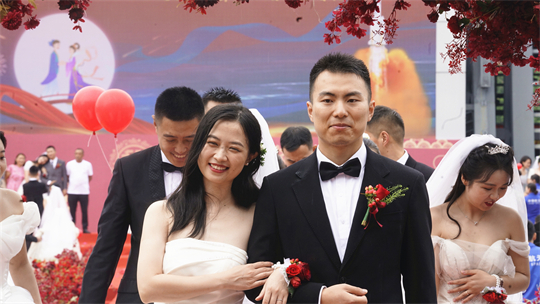 舞臺(tái)、氣球精心裝扮,美景、佳人喜迎幸?!槎Y現(xiàn)場(chǎng),新郎們身著深色西裝,筆挺英??;新娘們身穿潔白婚紗,美麗動(dòng)人。一個(gè)個(gè)精心設(shè)置的儀式,一張張洋溢幸福的笑臉,讓這場(chǎng)集體婚禮甜蜜加倍、幸福爆表。