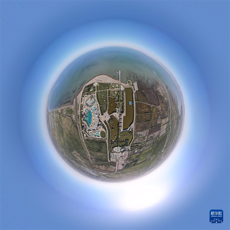 8月31日拍攝的新疆博斯騰湖大河口景區(qū)(無(wú)人機(jī)全景照片)。