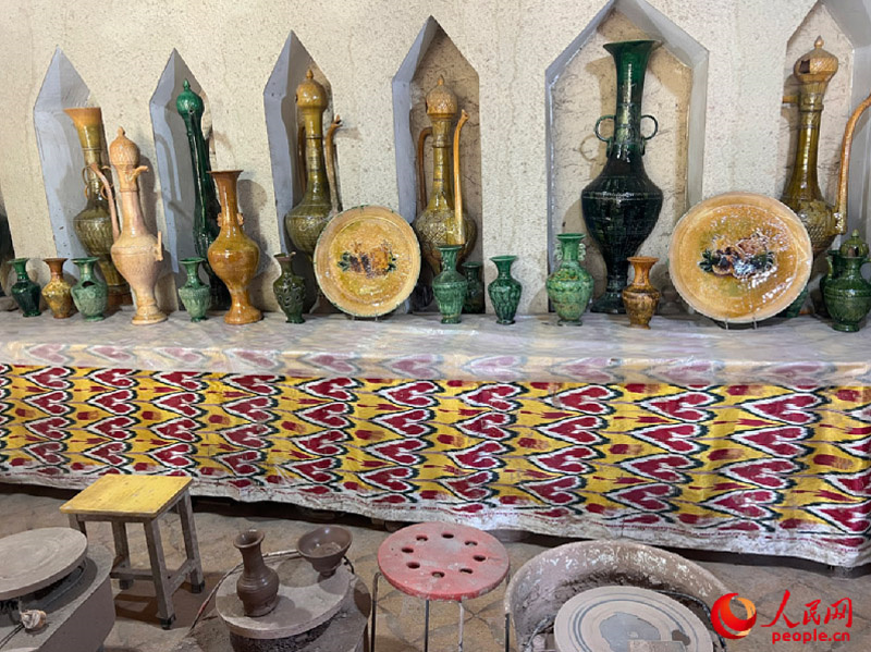 阿卜杜克熱木·阿卜杜熱合曼是阿卜杜熱合曼·麥麥提敏老人的三兒子,從八九歲就開始跟著父親學做土陶,技藝最為精湛,制作的土陶頗為精美。他介紹說:“我很喜歡這項技藝,開始只是想著做土陶能掙錢,現(xiàn)在想還要帶動旅游,為村里和鎮(zhèn)里的發(fā)展做貢獻,以后還要吸引更多的人來做,我對自己有信心,對土陶的發(fā)展也有信心。”
