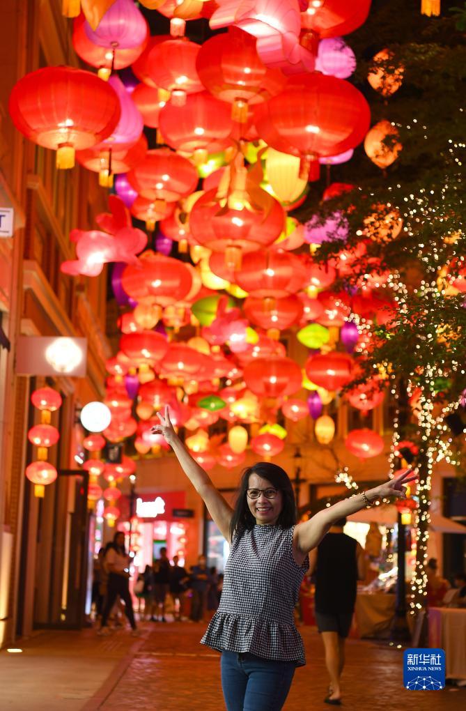 9月17日,人們?cè)诶麞|街觀賞彩燈。