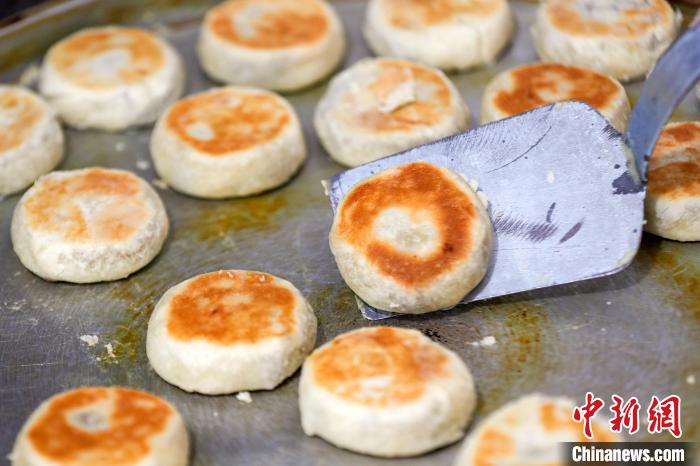 9月19日,臨近中秋,在安徽省黃山市徽州區(qū)潛口鎮(zhèn)澄塘村,傳統(tǒng)火腿月餅進入產(chǎn)銷旺季。制餅手藝人經(jīng)過和油面、扯面團、包油酥、包餡料、烤制等純手工工序,制成皮酥餡飽的火腿“土月餅”,深受食客的喜愛。
