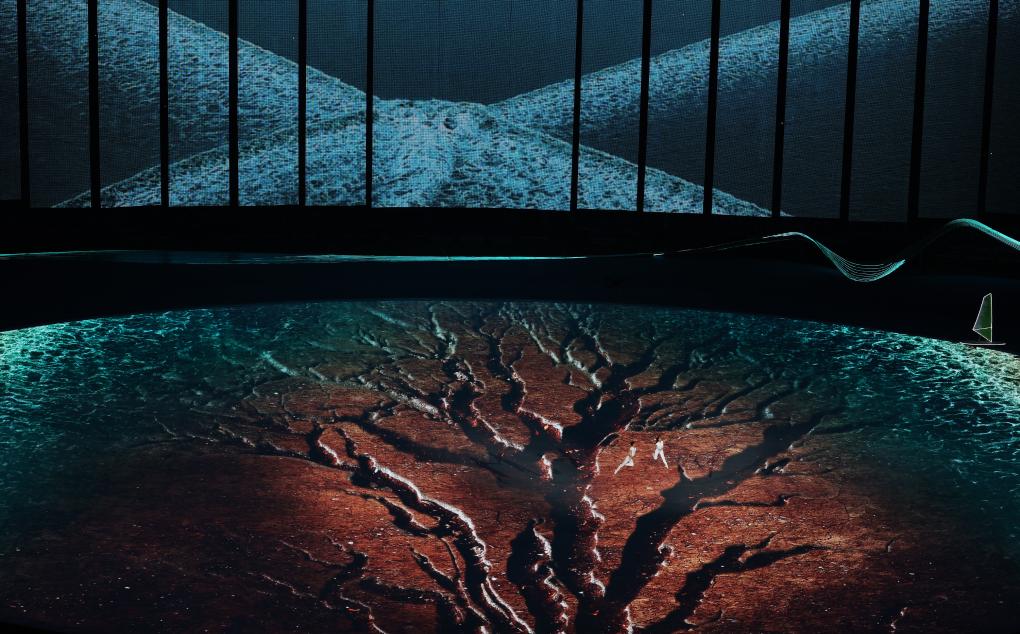 裸眼3D、AR數(shù)字穹頂、3D雙威亞、流體計算和185米寬、15米高的網(wǎng)幕等技術(shù),實現(xiàn)了立體美學(xué)和東方美學(xué)的融合,也實現(xiàn)了技術(shù)和藝術(shù)的雙向奔赴。