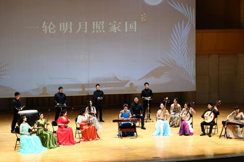 當晚,中央音樂學院青年國樂團為現(xiàn)場兩岸同胞帶來“盈樂攬芳華”“天涯共此時”上下兩篇章美妙樂曲。每一曲過后,現(xiàn)場500多位觀眾報以熱烈掌聲。