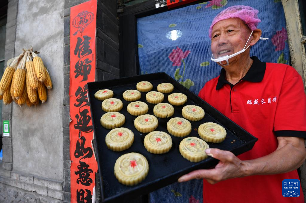 9月20日,在河北省石家莊市井陘縣天長鎮(zhèn)的一家手工月餅作坊里,老師傅準備烤制月餅。