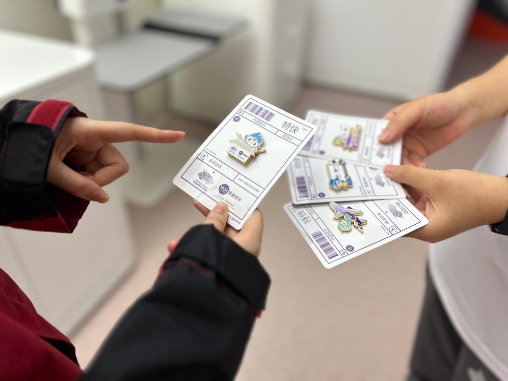 記者在亞運(yùn)會(huì)主媒體中心里,看到不少人在一展臺前排隊(duì)領(lǐng)徽章,款式有坐著航空飛機(jī)的蓮蓮、騎馬的琮琮、化身快遞小哥的宸宸等?!斑@些徽章把亞運(yùn)物流服務(wù)與亞運(yùn)‘三小只’做了特別的結(jié)合?!眻A通速遞工作人員姜玲說,物流服務(wù)往往是人們看不見的服務(wù),我們希望通過徽章展示出高效便捷的快遞物流以及中國速度。