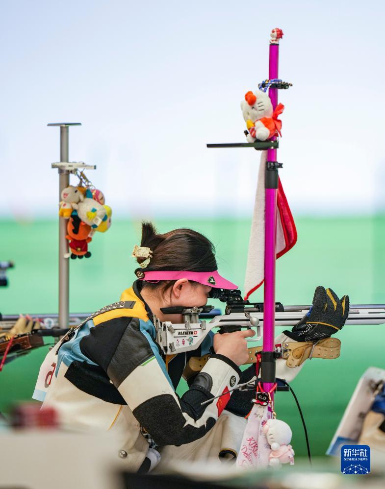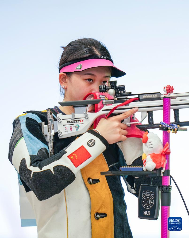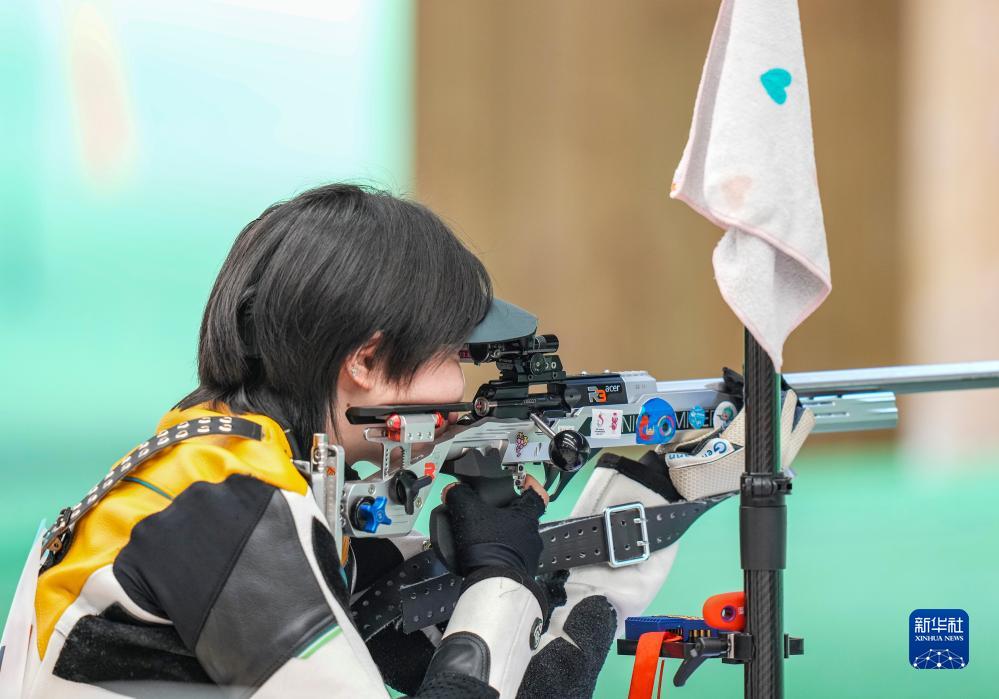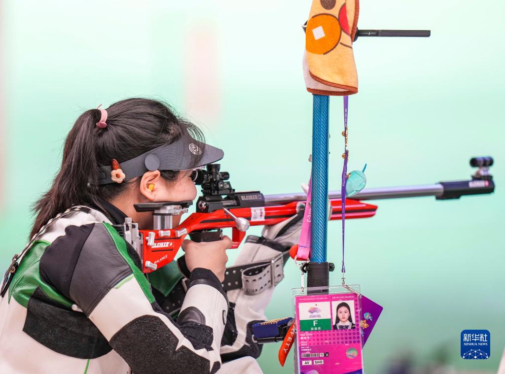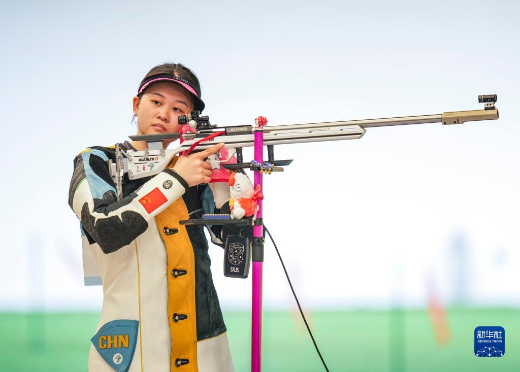 當(dāng)日,在浙江省杭州市富陽區(qū)富陽銀湖體育中心舉行的杭州亞運會射擊女子50米步槍3種姿勢團(tuán)體賽決賽中,中國隊以總分1773分的成績?nèi)〉媒鹋疲《汝牶晚n國隊分獲銀牌、銅牌。