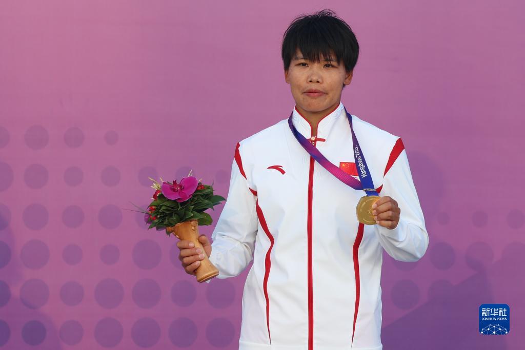 9月27日,冠軍中國選手黃先婷在頒獎儀式上。