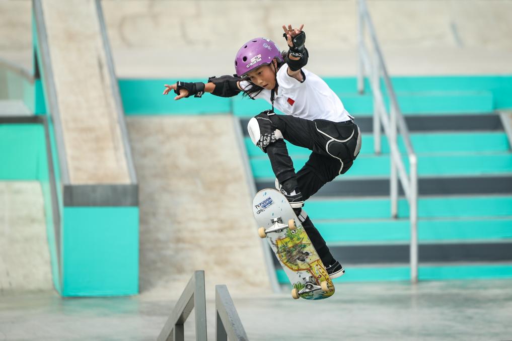 9月27日,在杭州亞運(yùn)會(huì)滑板女子街式?jīng)Q賽中,中國(guó)選手崔宸曦以242.62分的成績(jī)奪得冠軍。新華社記者 潘昱龍 攝