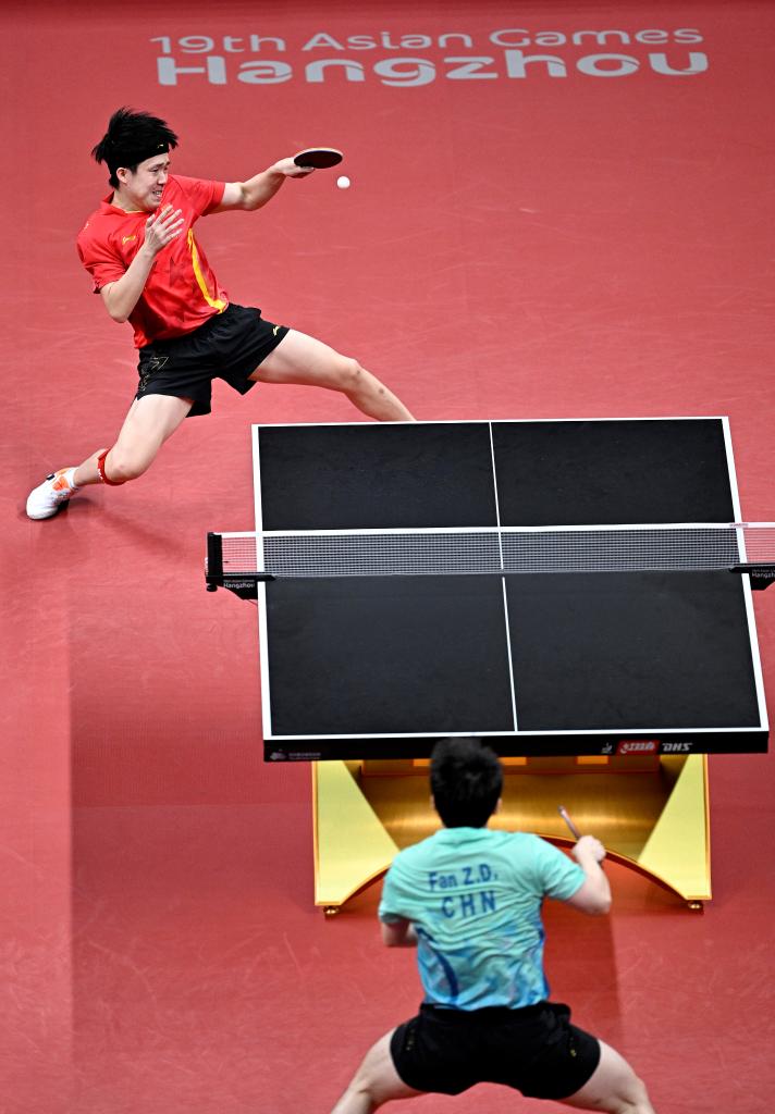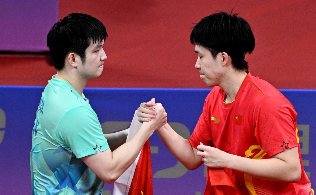 第四局,樊振東以11:7獲勝,雙方大比分戰(zhàn)成2:2。第五局,王楚欽打得更加積極主動(dòng),以11:4獲勝。第六局,背水一戰(zhàn)的樊振東在5:5后連續(xù)得分,最終以11:7獲勝,雙方戰(zhàn)至3:3。決勝局,王楚欽在7:7后連得3分,率先獲得賽點(diǎn),并最終以11:8獲勝,首次贏得亞運(yùn)會(huì)男單冠軍。