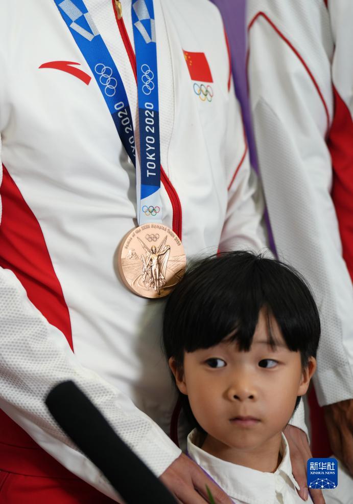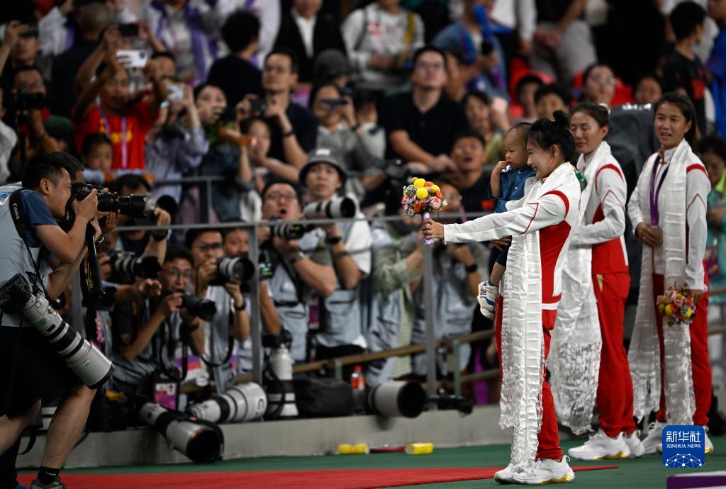 10月4日,蘇炳添的兒子蘇浩宸在頒獎(jiǎng)儀式后。