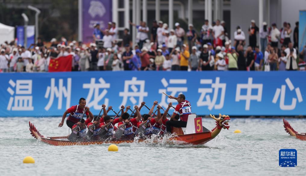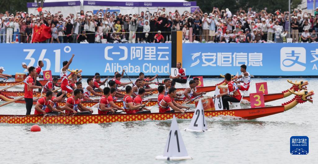 當(dāng)日,在浙江溫州龍舟運動中心進(jìn)行的杭州亞運會男子組12人龍舟500米直道競速賽中,中國隊以2分09秒152的成績獲得冠軍。印度尼西亞隊獲得亞軍,泰國隊獲得季軍。
