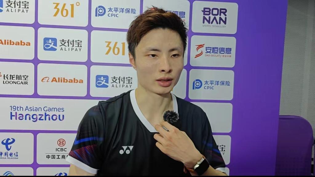 10月6日,石宇奇賽后接受采訪。新華社記者 許仕豪 攝