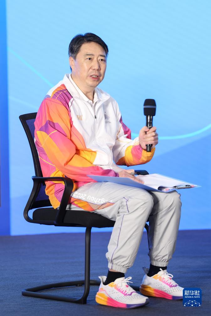 10月7日,杭州亞組委宣傳部部長、杭州亞運(yùn)會(huì)主新聞發(fā)言人許德清在見面會(huì)現(xiàn)場發(fā)言。