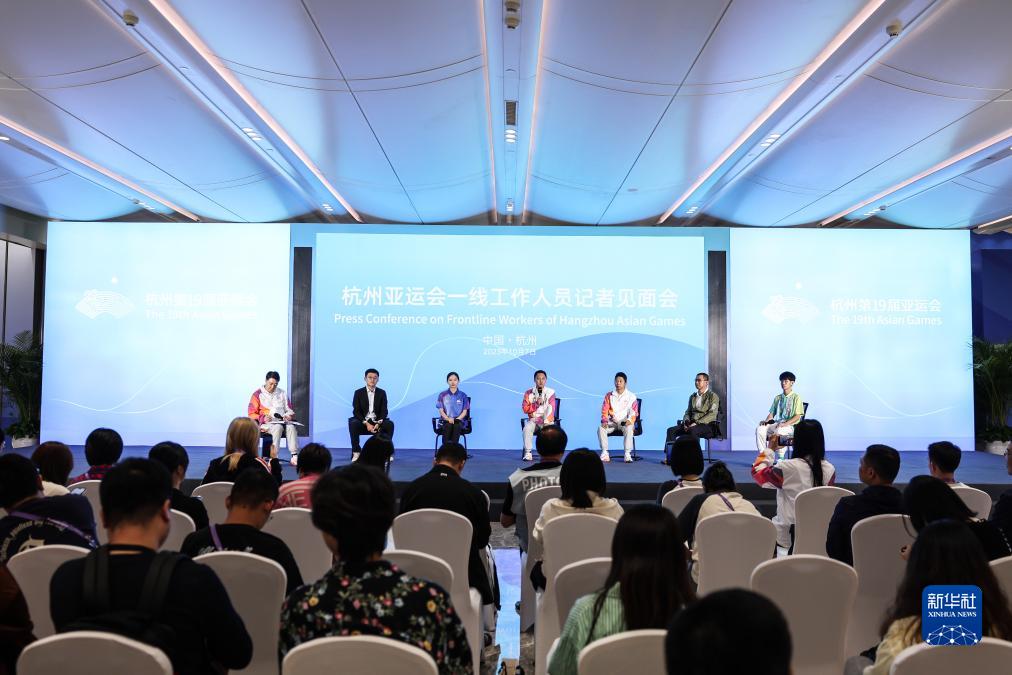 當(dāng)日,杭州亞運(yùn)會(huì)一線工作人員記者見面會(huì)在杭州主媒體中心舉行。