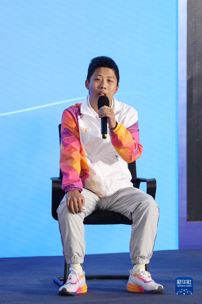 10月7日,杭州亞運(yùn)會(huì)運(yùn)動(dòng)員村餐飲主管胡傳剛在見面會(huì)現(xiàn)場發(fā)言。