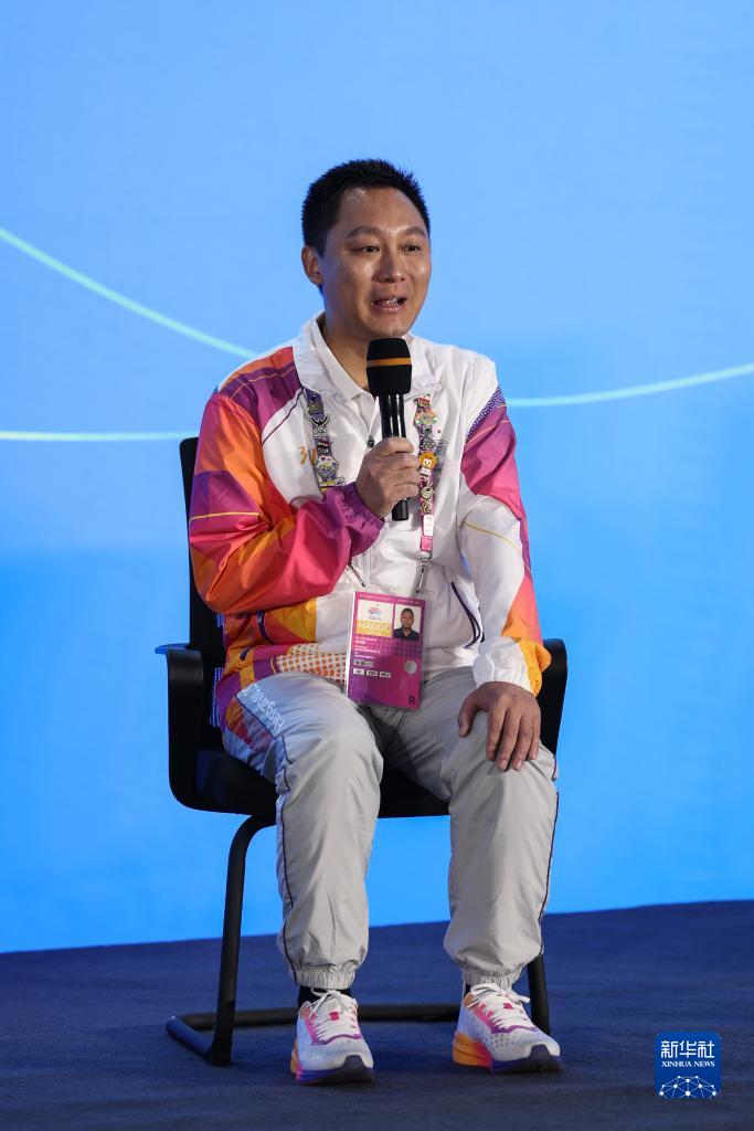 10月7日,中國日?qǐng)?bào)文教體育部、杭州亞運(yùn)英文官方會(huì)刊記者石甫天在見面會(huì)現(xiàn)場發(fā)言。