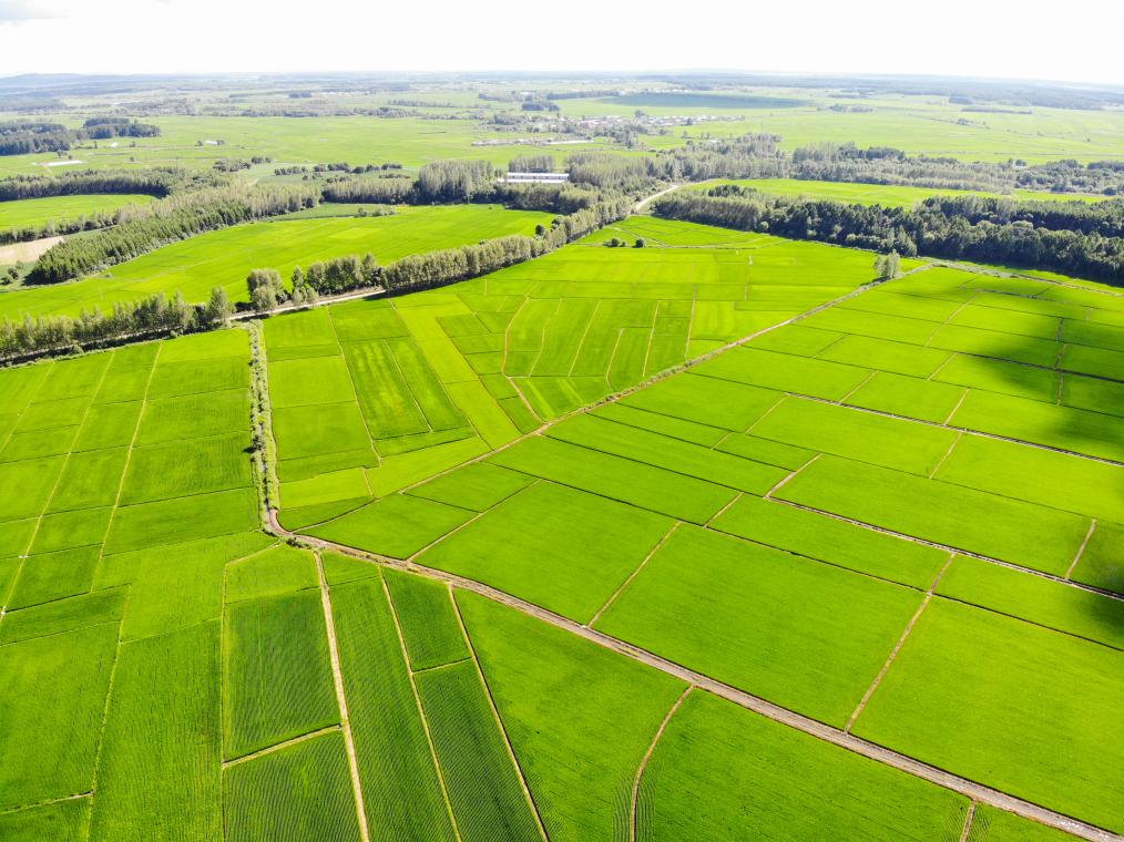 2022年7月,黑龍江省鐵力市山泉農(nóng)機農(nóng)民專業(yè)合作社高標(biāo)準(zhǔn)有機稻田(無人機照片)。新華社記者王松 攝