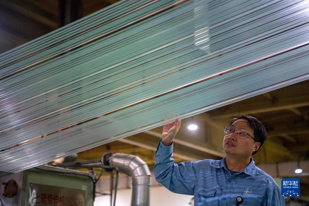 10月17日,在中國(guó)石化集團(tuán)重慶川維化工有限公司,工作人員在生產(chǎn)線上檢查化工產(chǎn)品生產(chǎn)情況。