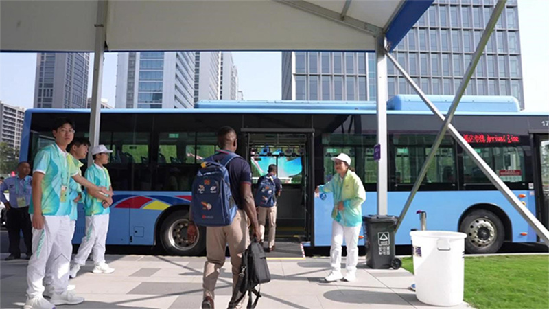 在亞殘運村,運動員們交通出行相當(dāng)便利,無論是小型接駁車還是接駁巴士,每一輛車都配備了齊全的助殘設(shè)備,輪椅可以輕松上下。“村”內(nèi)站點安排合理,從居住區(qū)到運動員餐廳,從歡迎中心到綜合門診部,“村”內(nèi)交通路線四通八達,班次密集,乘坐方便,駕駛員們的服務(wù)更是讓人豎起大拇指。