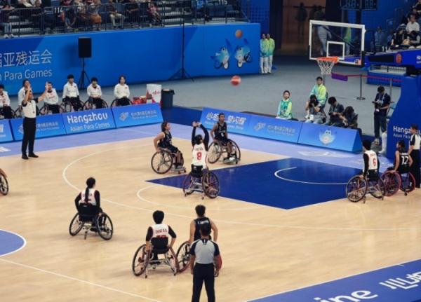 10月19日,杭州亞殘運會輪椅籃球項目小組賽,率先在杭州奧體中心體育館開打。