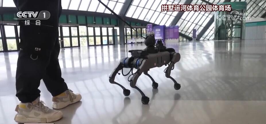 在盲人足球的比賽場地——拱墅運河體育公園體育場,由西湖大學研發(fā)的電子導盲犬“小西”已經(jīng)就位。它不僅把整個場館的地圖銘記于“心”,還能“聽懂”中英雙語,甚至還能規(guī)劃最佳路線,就連這根導盲繩也充滿科技含量。通過繩端傳感器,可以調(diào)節(jié)電子導盲犬的行走速度,為盲人運動員和視障觀眾提供安全、高效、細致的服務。