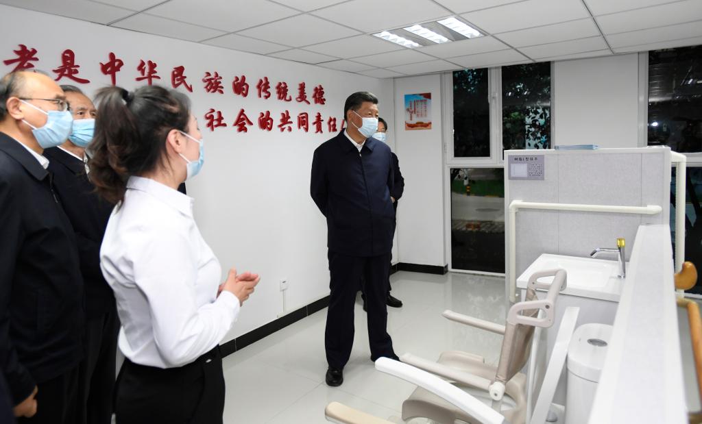 2021年8月24日,習近平總書記在河北省承德市濱河社區(qū)居家養(yǎng)老服務中心察看適老化改造等項目。新華社記者 李學仁 攝