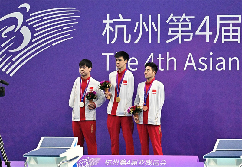 10月23日,杭州第4屆亞殘運(yùn)會(huì)開(kāi)幕后的首個(gè)比賽日,杭州本土選手徐海蛟在男子400米自由泳—S8決賽和男子200米個(gè)人混合泳—SM8決賽項(xiàng)目中,勇奪兩枚金牌。