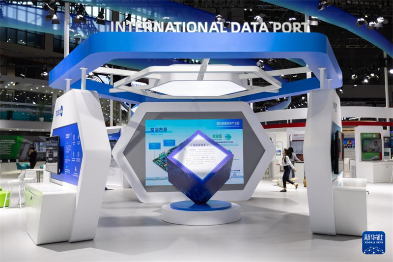 這是11月2日在技術裝備展區(qū)臨港展示區(qū)拍攝的國際數(shù)據(jù)經濟產業(yè)園展臺。