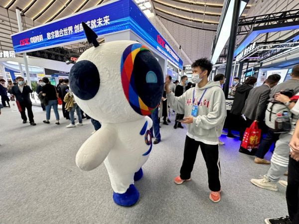 2022年11月9日,互聯(lián)網(wǎng)之光博覽會現(xiàn)場,大會吉祥物“小互”在與觀眾互動