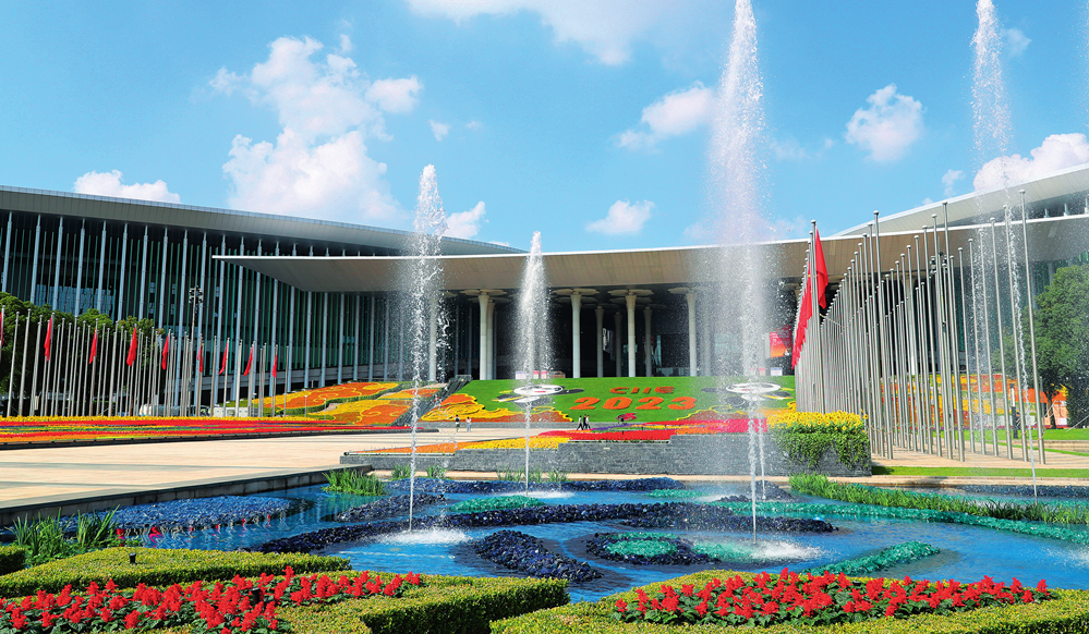 裝飾一新的國家會(huì)展中心(上海)南廣場(chǎng)(2023 年 10 月 24 日攝)方喆攝 / 本刊