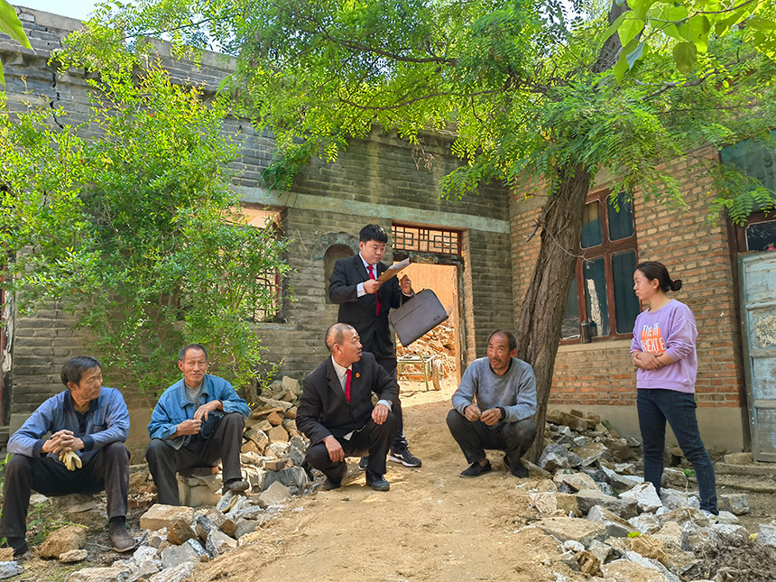 王世廣(左一)正在進(jìn)行案件回訪。魏振敏攝
