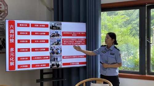 “傳統(tǒng)群眾工作手段主要是依靠人民調(diào)解、行政調(diào)解、司法調(diào)解三調(diào)聯(lián)動(dòng),而我們創(chuàng)立的‘貴和’工作法,推行警調(diào)對(duì)接、訪調(diào)對(duì)接、律調(diào)對(duì)接、訴調(diào)對(duì)接、民調(diào)對(duì)接、鄉(xiāng)賢調(diào)對(duì)接的多元化解‘六調(diào)對(duì)接’制度,輔警人員聘任為人民調(diào)解員。”劉哲先說。