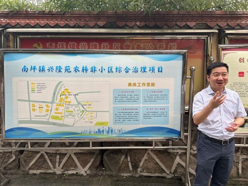 南坪鎮(zhèn)黨委副書(shū)記邵曉宇介紹興隆社區(qū)農(nóng)轉(zhuǎn)非小區(qū)綜合治理的情況。人民政協(xié)網(wǎng)記者王慧文 攝