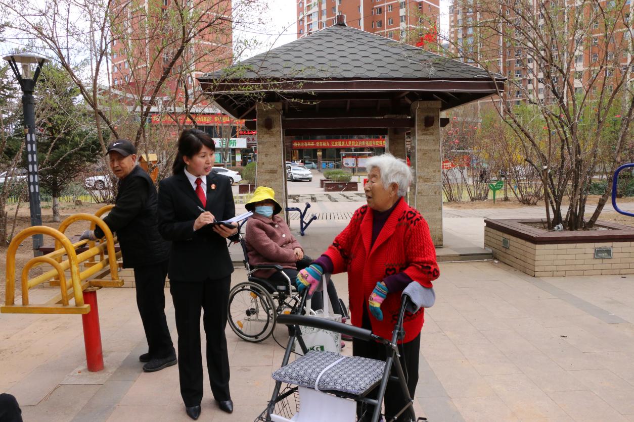 圖為雙橋法院濱河社區(qū)法官工作站法官下沉社區(qū)普法宣傳。