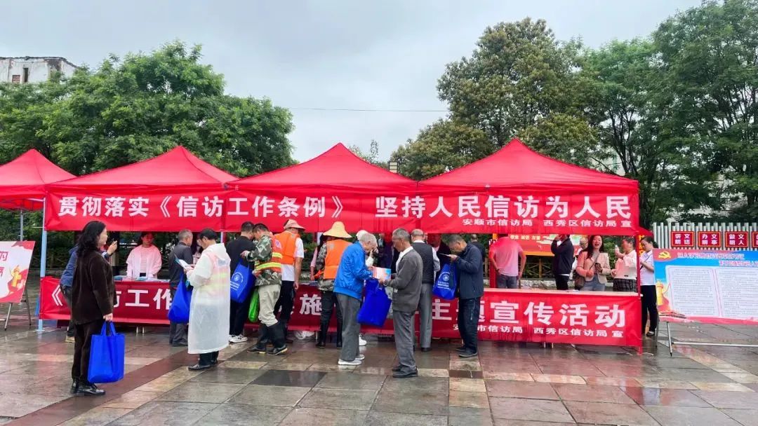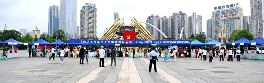貴州省信訪局聯(lián)合貴陽市信訪局及市、區(qū)15家單位于當(dāng)日上午在貴陽市筑城廣場開展《條例》施行一周年線下集中宣傳活動。工作人員現(xiàn)場向群眾介紹、發(fā)放《條例》宣傳資料,并積極解答群眾問題。