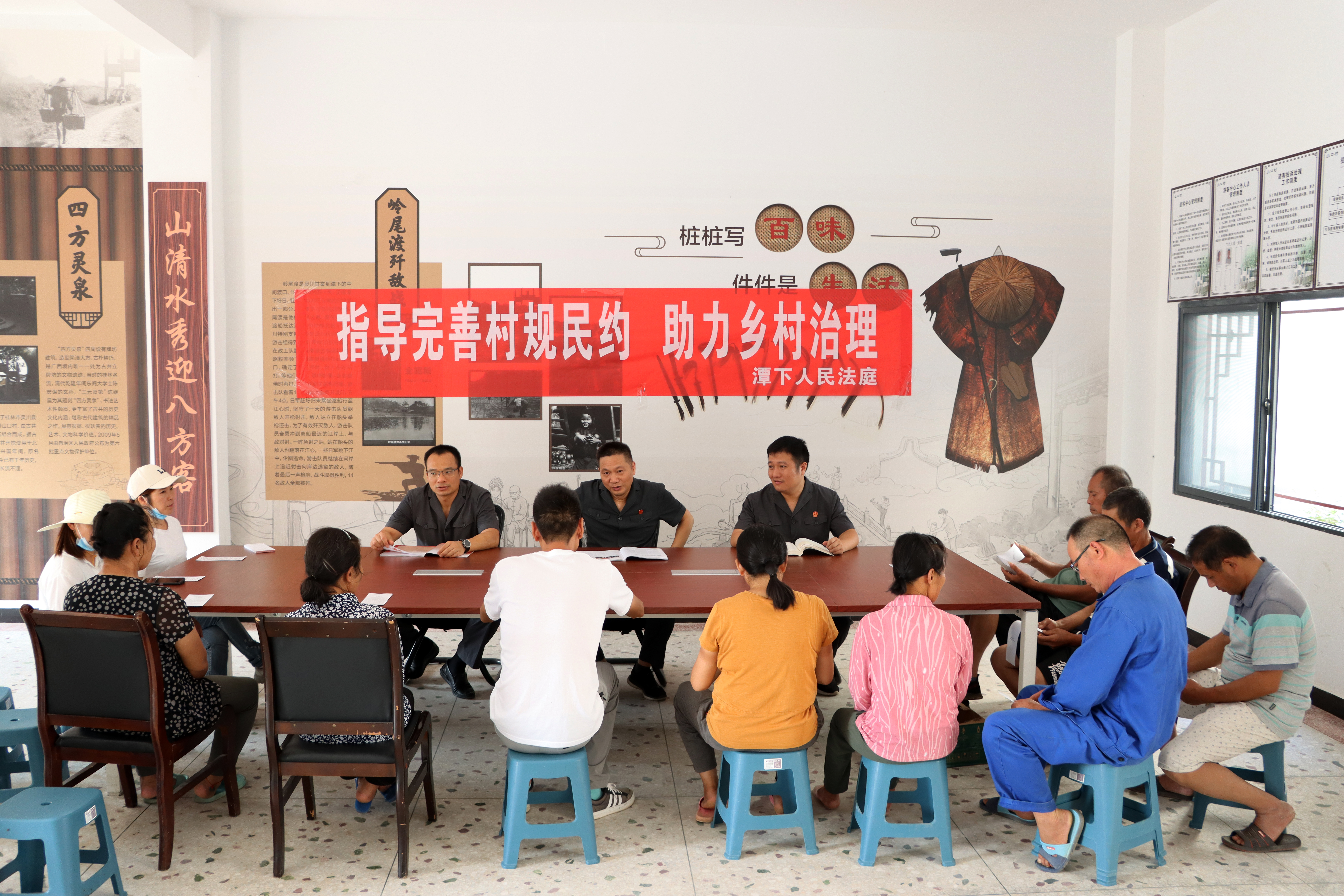 鄉(xiāng)村發(fā)展離不開(kāi)和諧穩(wěn)定的法治環(huán)境,需要加強(qiáng)鄉(xiāng)村治理,提升村民自治水平。潭下法庭積極參與鄉(xiāng)村多元共治,充分發(fā)揮人民法院司法職能,協(xié)助村委會(huì)修訂完善村規(guī)民約、紅白理事會(huì)章程制度,引導(dǎo)群眾破陳規(guī)、除陋習(xí)、樹(shù)新風(fēng),用法治文化引領(lǐng)鄉(xiāng)村文明風(fēng)尚。