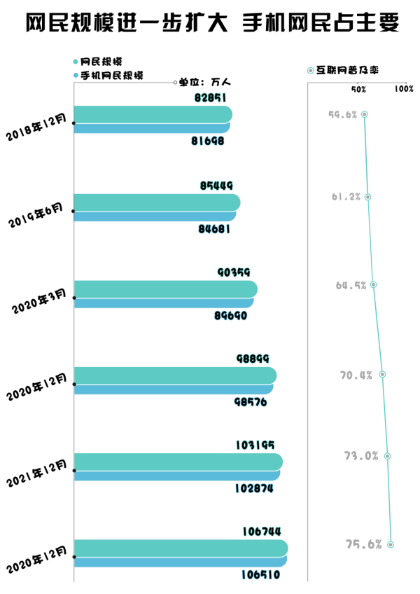 根據(jù)中國互聯(lián)網(wǎng)絡(luò)信息中心(CNNIC)發(fā)布的第51次《中國互聯(lián)網(wǎng)絡(luò)發(fā)展?fàn)顩r統(tǒng)計(jì)報(bào)告》(以下簡(jiǎn)稱:《報(bào)告》)顯示,截至2022年12月,我國網(wǎng)民規(guī)模達(dá)到10.67億,互聯(lián)網(wǎng)普及率達(dá) 75.6%?;ヂ?lián)網(wǎng)絡(luò)發(fā)展呈現(xiàn)哪些特征呢?以下數(shù)據(jù)為您解讀。