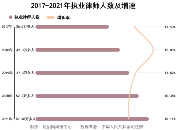 1.全國執(zhí)業(yè)律師超57.48萬人,近五年平均增速超10%