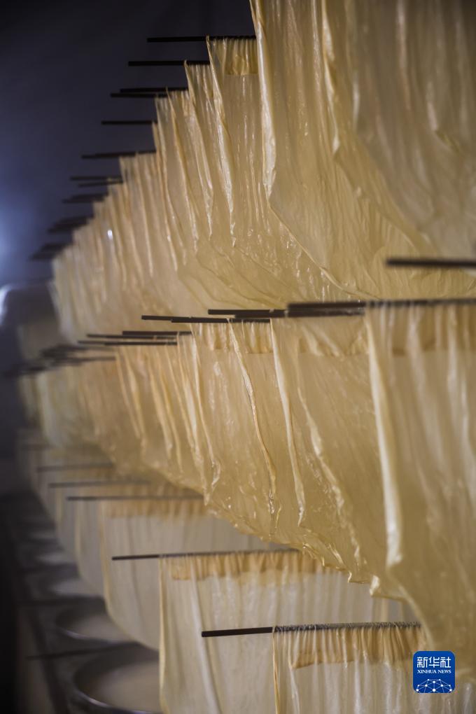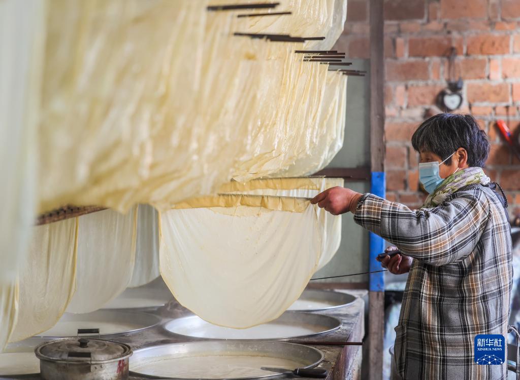 春節(jié)臨近,浙江省諸暨市安華鎮(zhèn)的傳統(tǒng)年貨——豆腐皮迎來銷售旺季。村民加緊制作豆腐皮,供應(yīng)節(jié)日市場。